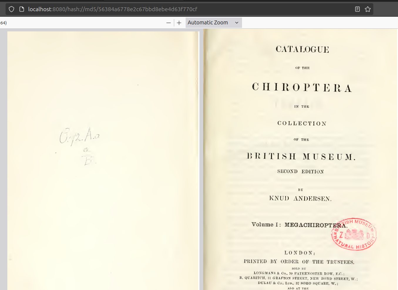 Andersen, K.C. 1912. Catalogue of the Chiroptera in the collection of the British Museum. Volume I: Megachiroptera. British Museum (Natural History), British Museum Catalogue, 854 pp. https://www.biodiversitylibrary.org/part/91323 https://doi.org/10.5962/bhl.title.8322 hash://md5/56384a6778e2c67bbd8ebe4d63f770cf 1